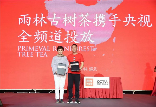 中國(guó)中央電視臺(tái)廣告經(jīng)營(yíng)管理中心客戶總監(jiān)/營(yíng)銷總監(jiān)石正茂老師,勐海雨林古茶坊茶葉有限責(zé)任公司董事長(zhǎng)兼總經(jīng)理樊露先生,簽約《中央廣播電視臺(tái)合作品牌傳播戰(zhàn)略2019央視簽約產(chǎn)品確認(rèn)書》,勐海雨林古茶坊茶葉有限責(zé)任公司正式入選“2019年CCTV民族匠心品牌”