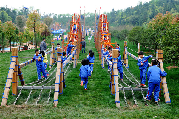勇士拓展基地占地近300畝,是中南地區(qū)規(guī)模最大、品質(zhì)最高、種類最全的大型現(xiàn)代化體能素質(zhì)拓展基地。這里是紅色文化之旅,這里是強(qiáng)身健體的訓(xùn)練基地,這里是增強(qiáng)團(tuán)隊(duì)合作精神的體驗(yàn)之地,區(qū)內(nèi)有新長征之路、勇攀珠峰、飛渡鐵索橋、水車陣、攀巖、青少年障礙越野、青少年攀爬組合、沖鋒塔、滑索等八大類50多個項(xiàng)目。