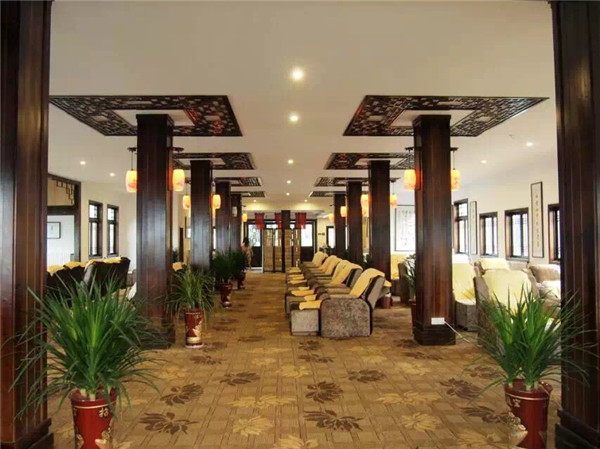 寬敞氣派的休息大廳,給游泳沐浴后疲憊的您提供一份舒適一份安靜,并為顧客提供自助餐、飲料等小吃為顧客補(bǔ)充泡湯消耗的能量,配備舒適的躺椅讓泡湯顧客快速恢復(fù)體力。