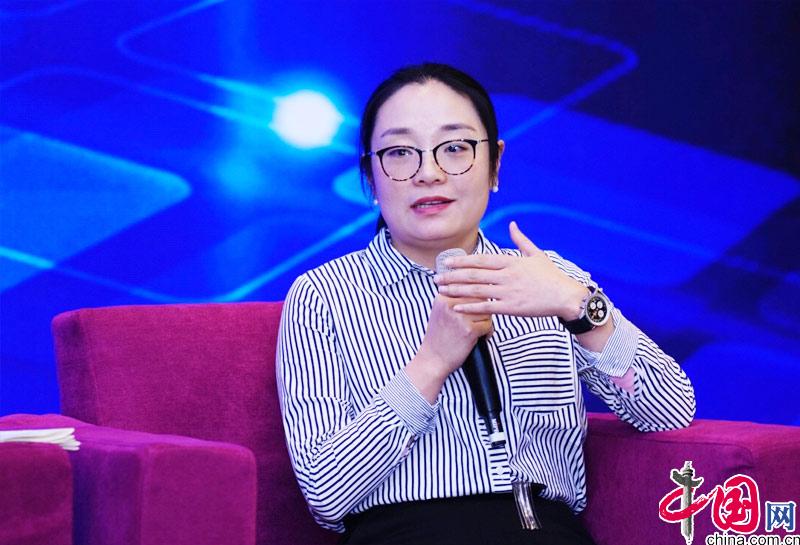 中國(guó)扶貧開(kāi)發(fā)服務(wù)有限公司總經(jīng)理助理于曉敏做論壇主題演講(中國(guó)網(wǎng) 李康攝)