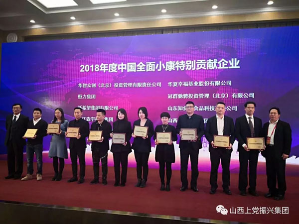 12月15日,由中國扶貧開發(fā)協會、國家信息中心、求是《小康》雜志社聯合主辦的以“高質量發(fā)展與決勝全面小康”為主題的2018第十三屆中國全面小康論壇在北京啟幕。會上,上黨振興集團榮獲“2018年度中國全面小康特別貢獻企業(yè)”稱號。