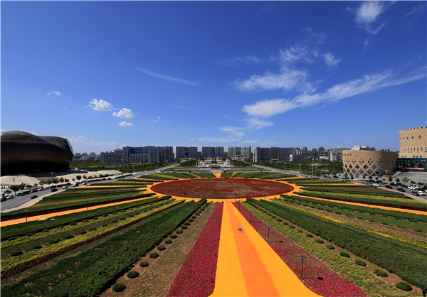 康巴什在建設之初,就樹立了“景城一體”的發(fā)展理念,從規(guī)劃、建設、管理、服務等方面構建了全域旅游的雛形。城市建設堅持舒展、生態(tài)、宜居的理念,將行政辦公區(qū)、文化娛樂區(qū)、商業(yè)金融區(qū)有機的融為一體,形成獨具魅力的人文景觀和與眾不同的城市風格。其中,依托烏蘭木倫河、阿布亥川、吉勞慶川三條季節(jié)性河流和貫通東西的青春山打造城市景觀主框架,先后建成31處公園廣場,最大限度地創(chuàng)造人與自然親近的空間,實現(xiàn)“將森林引入城市,把城市建在森林”的生態(tài)格局,成為全國首座“環(huán)境藝術示范試點城市”。與此同時,把建設鄂爾多斯旅游中心和西北地區(qū)旅游名城作為康巴什區(qū)未來發(fā)展的主要方向。建設烏蘭木倫湖、民族團結園、千亭山文化景區(qū)、婚慶文化園等11個文化旅游景區(qū)。游客平均每走1000米就可以看到一處城市休閑旅游地,形成了“城在景中、景在城中”的發(fā)展格局,城市與旅游一體化成為康巴什發(fā)展全域旅游最根本的依托和最突出的特色。
