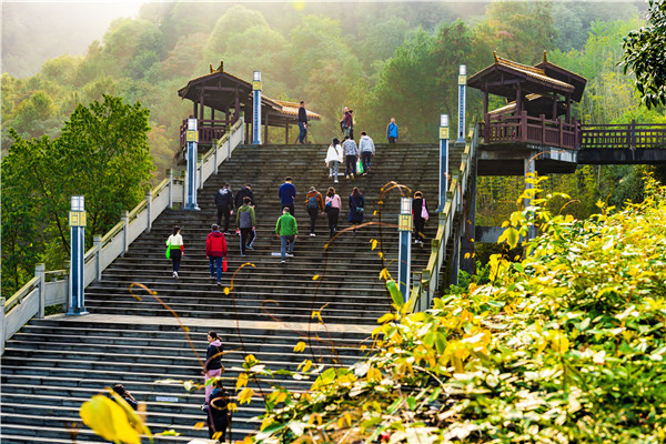 云峽步道則連接著鐵山云梯和峽江步道,貫通形成景區(qū)循環(huán)登山步游道。步道平緩精致,串連花田覓香、銅鑼朝天、禪園聽雨等特色景觀,是休閑健身、欣賞美景、怡養(yǎng)身心的理想選擇。