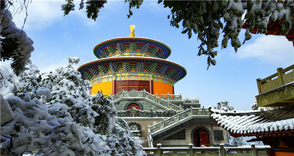 禪意園占地46畝,園中茂林修竹,綠意盎然,內有菩提閣、善緣坊、空山茗舍、涵海茶榭和聽雨亭、枕霞亭、臥云亭、沐風亭等唐代風格的樓舍亭榭,是游人休閑品茗,悟禪怡心之佳所。逢雨之時更可領會天傾銀漢、佛灑甘霖的妙境。