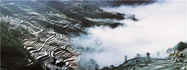 千年哈尼梯田——紅河州哈尼梯田核心區(qū)位于元陽縣的哀牢山南部,距今已有1300多年的歷史,是紅河哈尼人民千年來在大山上勞作,“雕刻”出來的世界文化遺產(chǎn)。梯田隨山勢地形變化,因地制宜,坡緩地大則開墾大田,坡陡地小則開墾小田,甚至溝邊坎下石隙也開田,因而梯田大者有數(shù)畝,小者僅有簸箕大,往往一山坡就有成千上萬畝。元陽哈尼梯田主要包括3大景區(qū),壩達景區(qū)有箐口、全福莊、麻栗寨、主魯?shù)冗B片1.4萬多畝的梯田;老虎嘴景區(qū)有勐品、硐浦、阿勐控、保山寨等近6000畝梯田;多依樹景區(qū)有多依樹、愛春、大瓦遮等連片上萬畝梯田。如此眾多的梯田,在茫茫森林的掩映中,在漫漫云海的覆蓋下,構(gòu)成了神奇壯麗的景觀。于2018年12月15日,在廣西南寧舉行的第二批國家生態(tài)文明建設(shè)示范市縣及第二批“綠水青山就是金山銀山”實踐創(chuàng)新基地命名表彰會上,紅河哈尼族彝族自治州元陽哈尼梯田遺產(chǎn)區(qū)被生態(tài)環(huán)境部命名為“綠水青山就是金山銀山”實踐創(chuàng)新基地。