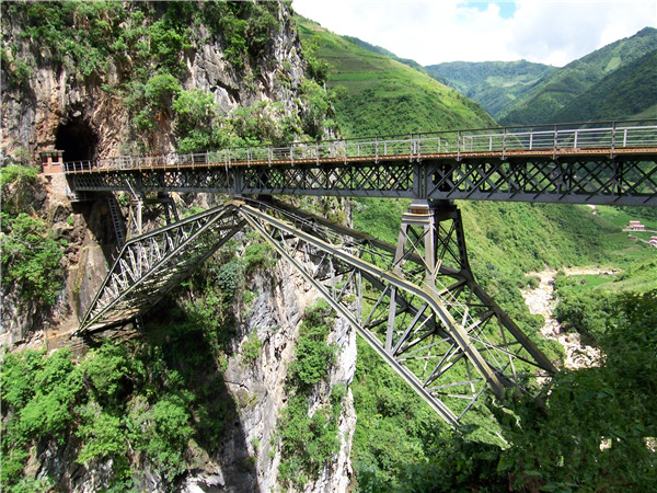 百年滇越鐵路——1910年,一條鋼鐵長龍把高原紅土地與世界銜接。當(dāng)拉響的鳴笛聲響徹云南的崇山峻嶺,一列列國際火車踏著米軌滾滾而來,穿行于云南高原的原始林莽、深谷,在急流之上凌空而過,舟車罕通的邊陲云南,一夜之間就與國際接上了軌。正式通車的云南昆明至越南河內(nèi)的滇越米軌鐵路,是云南第一條國際鐵路,也是中國最長的一條軌距為1米的窄軌鐵路。滇越鐵路是云南百年前唯一的運輸“大動脈”,被稱之為與蘇伊士運河、巴拿馬運河相媲美的世界第三大工程。隨著由馮小剛執(zhí)導(dǎo)的電影《芳華》熱播,作為影片重要外景取景地的紅河州蒙自市碧色寨火車站獲得了廣泛關(guān)注,也逐漸成為以滇越鐵路為主體的代表性工業(yè)文明旅游勝地。