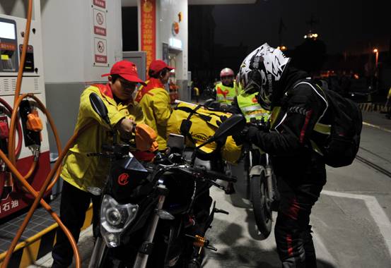 1月21日清晨,中國(guó)石油泉州荊山加油站,鐵騎們整裝待發(fā)。