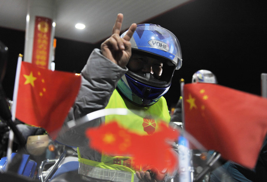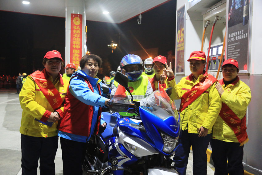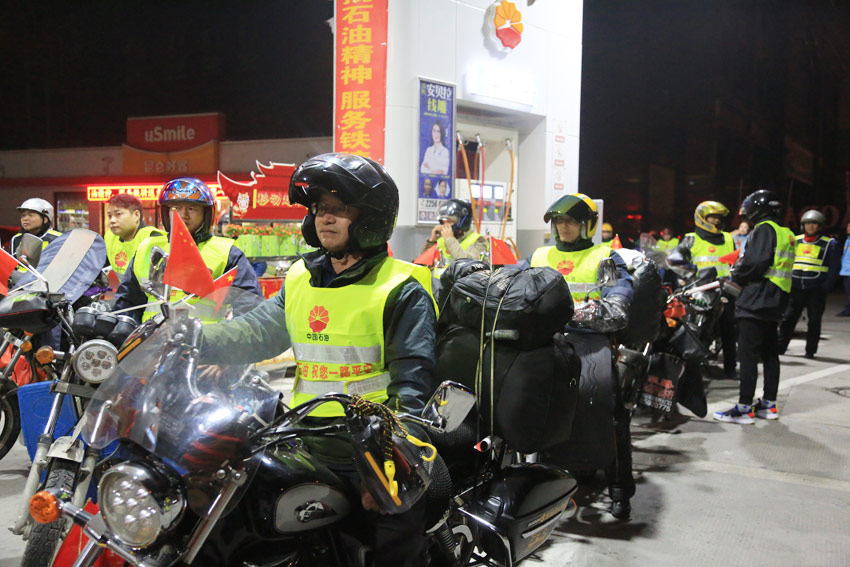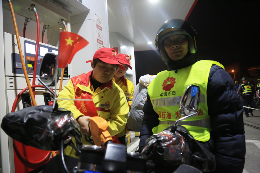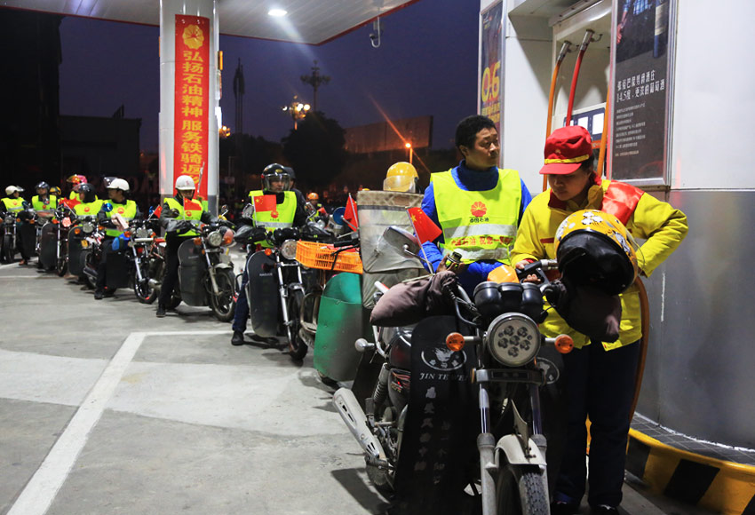 1月21日清晨,中國(guó)石油泉州荊山加油站。鐵騎出發(fā)前,排成長(zhǎng)隊(duì)免費(fèi)加油。