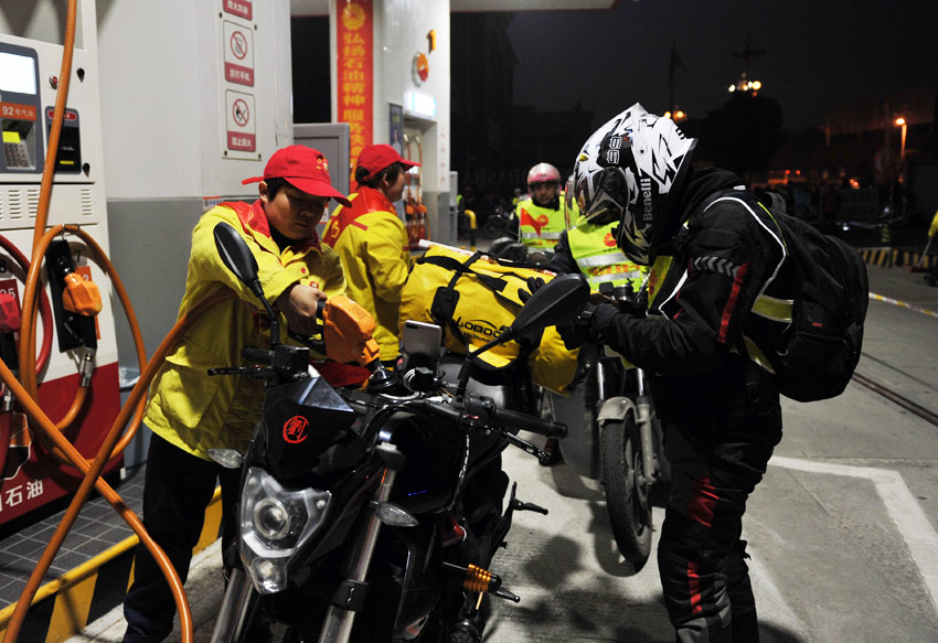 鐵騎出發(fā)前,排成長(zhǎng)隊(duì)免費(fèi)加油