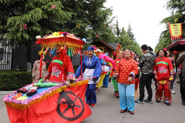 民俗抬花轎表演引得游人紛紛觀看拍照