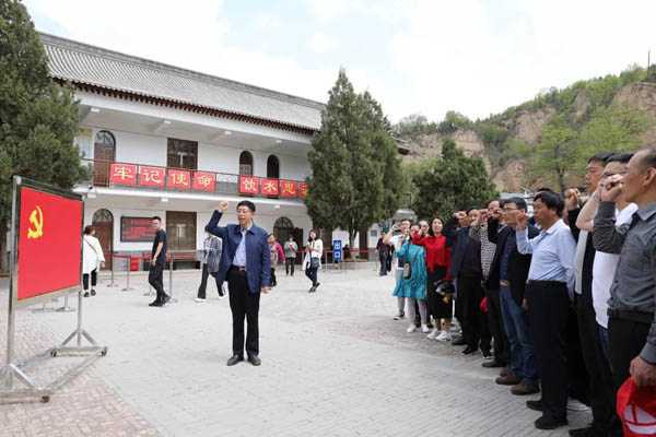 在延川縣梁家河村,全體人員先后參觀了梁家河村史館、知青沼氣池、知青故居等。同時(shí),全體黨員干部群眾不忘初心,牢記使命,在黨旗前莊嚴(yán)宣誓,重溫了入黨誓詞。