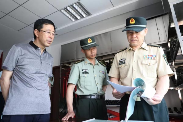 6月4日,長(zhǎng)治市軍分區(qū)司令員徐東雷一行到國(guó)防教育示范村鎮(zhèn)——振興小鎮(zhèn)調(diào)研基層民兵陣地建設(shè),上黨區(qū)人武部部長(zhǎng)陳功、政委王海超等領(lǐng)導(dǎo)陪同。