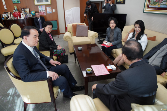 On 23rd January 2019, Secretary General of Boao Forum for Asia Mr. Li Baodong, President of Global Health Forum Dr. Margaret Chan Fung Fu-chun arrived at the headquarters of the Democratic Progressive Party and met with Toshihiro Nikai. (photo provided by the host )
