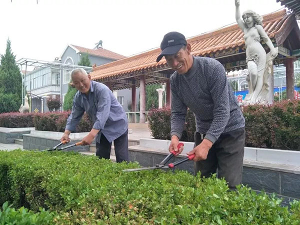 實施了三大綠化工程,一是山坡植綠工程。規(guī)劃建設(shè)了“五個千畝”種植基地----千畝干果經(jīng)濟林種植、千畝道地藥材種植、千畝小雜糧生產(chǎn)、千畝花卉培育和千畝有機蔬果種植,既實現(xiàn)了山坡綠化,也催生了綠色經(jīng)濟。二是身邊增綠工程。對村內(nèi)主干道路、大街小巷全面綠化,并建起牡丹園、芍藥園、月季園三座花卉園,村里及周邊綠化總面積達到2000余畝。三是庭院披綠工程。振興村大力倡導(dǎo)庭院綠化,為村民提供葡萄及藤蔓植物幼苗,并免費指導(dǎo)種植。目前,全村綠化覆蓋率達到62%,人均綠化面積35㎡,綠化總投資達到6500萬元。