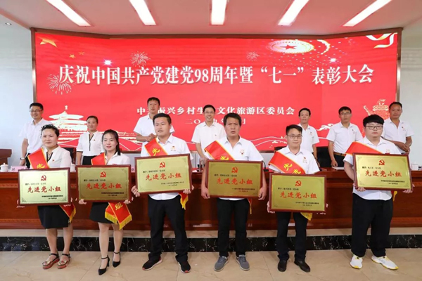 6月30日,振興小鎮(zhèn)慶祝中國(guó)共產(chǎn)黨建黨98周年暨“七一”表彰大會(huì)在太行鄉(xiāng)村振興人才學(xué)院舉行,黨委班子成員、全體黨員干部、各單位負(fù)責(zé)人以及群眾代表,共計(jì)近500人參加。