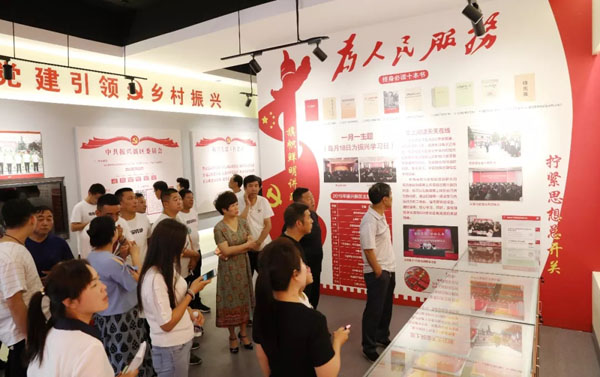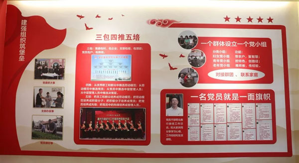 第四部分展出的是振興黨建引領(lǐng)鄉(xiāng)村振興的主要內(nèi)容,主要從政治建設(shè)、思想建設(shè)、組織建設(shè)、制度建設(shè)、作風(fēng)建設(shè)五個方面來具體展示振興的黨建工作思路,簡單可以概括為“堅定信心聽黨話、不忘初心跟黨走、凝聚民心感黨恩、公而忘私想百姓、扎根鄉(xiāng)村愛百姓、和諧共富為百姓、正心明德承古風(fēng)、成風(fēng)化人樹新風(fēng)、強基固本正民風(fēng)”。這九句話具體來講就是:黨建引領(lǐng)鄉(xiāng)村振興,率先帶動鄉(xiāng)風(fēng)文明。
