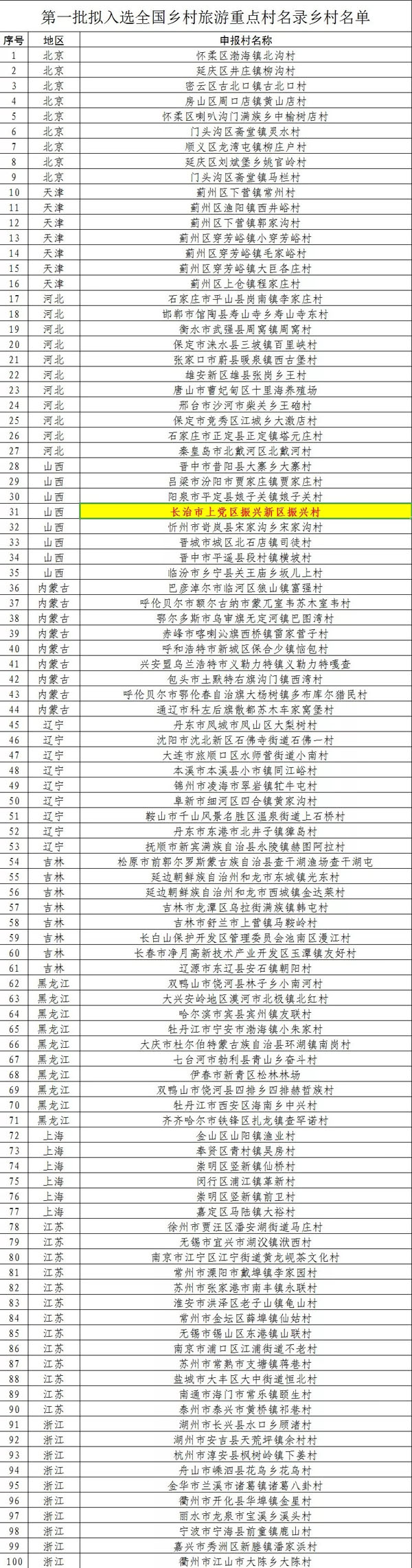 7月12日,按照《“十三五”旅游業(yè)發(fā)展規(guī)劃》《國(guó)務(wù)院關(guān)于促進(jìn)鄉(xiāng)村產(chǎn)業(yè)振興的指導(dǎo)意見(jiàn)》提出的建立全國(guó)鄉(xiāng)村旅游重點(diǎn)村名錄要求,文化和旅游部會(huì)同國(guó)家發(fā)展改革委聯(lián)合開(kāi)展了全國(guó)鄉(xiāng)村旅游重點(diǎn)村名錄遴選工作,確定了第一批擬入選全國(guó)鄉(xiāng)村旅游重點(diǎn)村名錄鄉(xiāng)村名單。山西省長(zhǎng)治市上黨區(qū)振興村榜上有名。