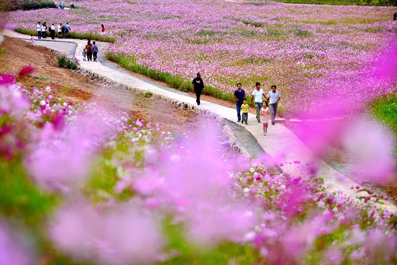 站在振興壇遠眺,不管是近景還是遠景,眼前的每一幕皆是美景。在振興小鎮(zhèn)“走花路”,在花間堂小憩,感受雄山的孟秋,欣賞田野里迎風(fēng)飄蕩的萬畝格桑,這是屬于小鎮(zhèn)的季節(jié),是關(guān)于時光最好的見證。