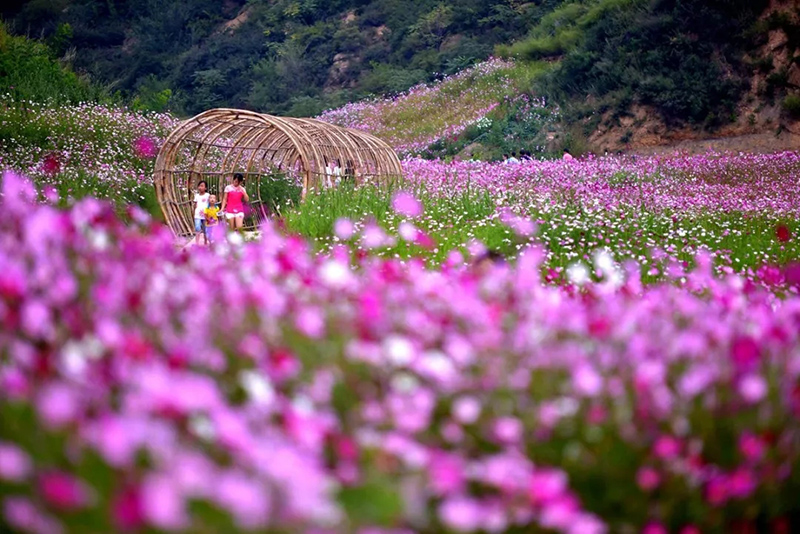 走進振興小鎮(zhèn)沿著上黨印象步行街穿過永泰門路過紅色文化廣場來到蝶戀花海,映入眼簾的已是大片大片盛放的格桑花。在這片田野里成千上萬株格?;ㄕL(fēng)怒放,有的剛剛露出遮羞的的笑臉,有的已經(jīng)要急于展示自己曼妙的身姿了。