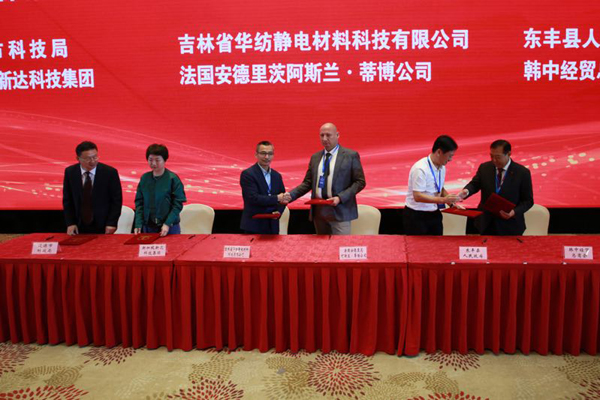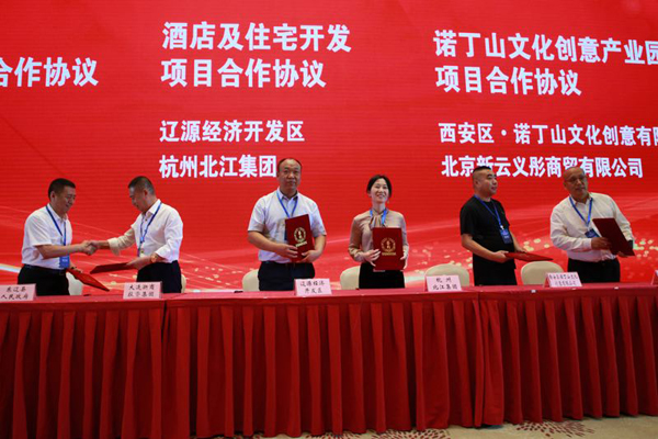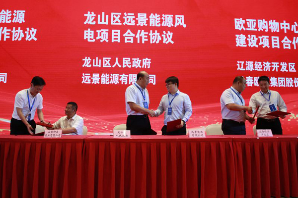 簽約儀式上,遼源市人民政府與中國(guó)核能電力股份有限公司簽署戰(zhàn)略合作協(xié)議;遼源市人民政府與大連萬達(dá)商業(yè)管理集團(tuán)簽署萬達(dá)廣場(chǎng)城市綜合體建設(shè)項(xiàng)目合作協(xié)議;遼源市科技局與新加坡新達(dá)科技集團(tuán)簽署戰(zhàn)略合作協(xié)議;吉林省華紡靜電材料科技有限公司與法國(guó)安德里茨阿斯蘭 ·蒂博公司簽署技術(shù)合作協(xié)議;東豐縣人民政府與韓中經(jīng)貿(mào)總商會(huì)簽署鹿業(yè)發(fā)展戰(zhàn)略合作協(xié)議;東豐縣人民政府與山西歸正實(shí)業(yè)有限公司簽署東豐縣生物質(zhì)能源產(chǎn)業(yè)化項(xiàng)目合作協(xié)議;龍山區(qū)人民政府與遠(yuǎn)景能源有限公司簽署龍山區(qū)遠(yuǎn)景能源風(fēng)電項(xiàng)目合作協(xié)議;遼源經(jīng)濟(jì)開發(fā)區(qū)與歐亞集團(tuán)簽署歐亞購(gòu)物中心二期項(xiàng)目建設(shè)合作協(xié)議;東遼縣人民政府與大連浙商投資集團(tuán)簽署年加工 20萬噸全株紅甜菜項(xiàng)目合作協(xié)議;遼源經(jīng)濟(jì)開發(fā)區(qū)與浙江北江集團(tuán)簽署酒店及住宅開發(fā)項(xiàng)目合作協(xié)議;西安區(qū)諾丁山文化創(chuàng)意有限公司與北京新云義彤商貿(mào)有限公司簽署諾丁山文化創(chuàng)意產(chǎn)業(yè)園項(xiàng)目合作協(xié)議;遼源經(jīng)濟(jì)開發(fā)區(qū)與上海海翰投資集團(tuán)有限公司簽署皮爾卡丹棉襪生產(chǎn)基地合作協(xié)議;東遼縣人民政府與中廣核節(jié)能產(chǎn)業(yè)發(fā)展有限公司簽署日產(chǎn)12萬立方米生物天然氣項(xiàng)目合作協(xié)議;西安區(qū)人民政府與吉林省新型城鎮(zhèn)化建設(shè)有限公司簽署遼源長(zhǎng)白山特色漿果產(chǎn)品深加工基地項(xiàng)目合作協(xié)議。