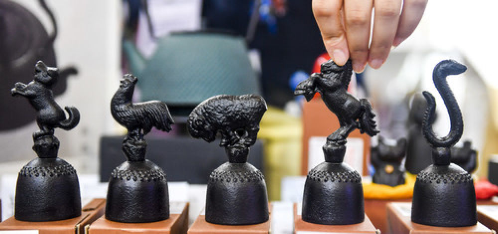 觀眾在日本商品展區(qū)參觀展出的十二生肖主題風(fēng)鈴(8月24日攝)。
