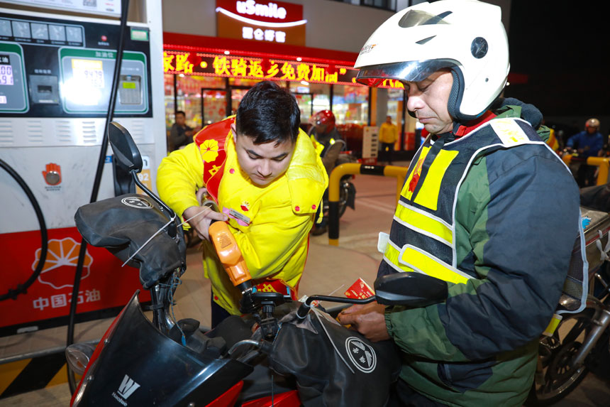 中國石油志愿者為返鄉(xiāng)鐵騎免費(fèi)加油等