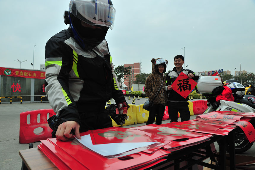 中國石油志愿者為返鄉(xiāng)鐵騎免費(fèi)加油