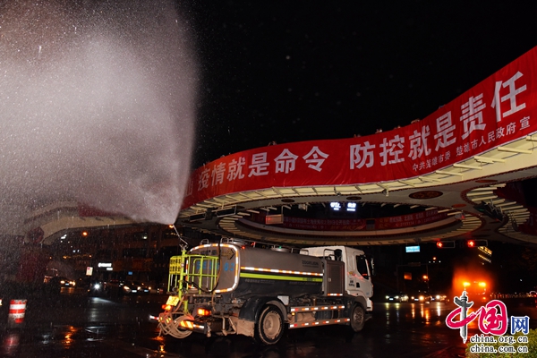 (為確保打贏疫情防控阻擊戰(zhàn),2月6日晚8時(shí)至7日凌晨2時(shí),云南楚雄州楚雄市按照省、州全面開展“大清掃、大消毒”愛國衛(wèi)生運(yùn)動(dòng)的部署,組織環(huán)衛(wèi)車輛及人員對(duì)城區(qū)(含開發(fā)區(qū))所有道路、街面、橋梁、市場、公園、廣場等進(jìn)行全城噴灑消毒 。王洪攝)