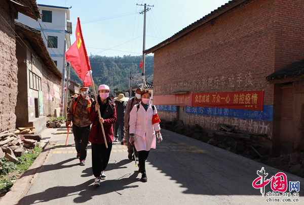 (云南楚雄州牟定縣新橋鎮(zhèn)麥沖村黨員志愿者開展防疫宣傳和衛(wèi)生大掃除。張斌攝)