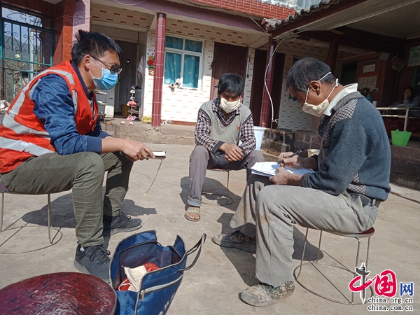駐村工作隊(duì)員按照分工白天與村組一起挨家挨戶宣傳政策和發(fā)放疫情防控宣傳單、收集人員信息特別是返鄉(xiāng)人員信息、到主要路口和村組顯著位置張貼標(biāo)語(yǔ),晚上整理資料,匯總摸底調(diào)查情況??谡帧⑾舅任镔Y不夠,工作隊(duì)員、村委班子與鎮(zhèn)上反復(fù)協(xié)調(diào),確保緊缺物資供應(yīng)。