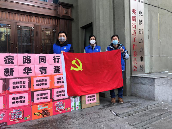 2月24日,新華保險黑龍江分公司購買了方便面、八寶粥、手套、一次性口罩等近萬元物資,新華黨員志愿者帶著慰問物資走進(jìn)道里區(qū)兆麟派出所、兆麟街道辦事處和安靜街道辦事處,向抗疫一線的平民英雄們致以慰問和感謝。新華保險黑龍江分公司志愿者表示,如需要志愿者新華人義不容辭。