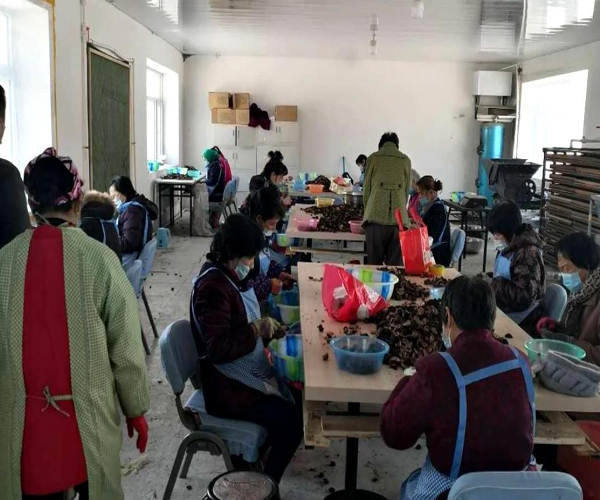 (復(fù)工復(fù)產(chǎn)后村民在富源村核桃仁深加工車間有序勞作)