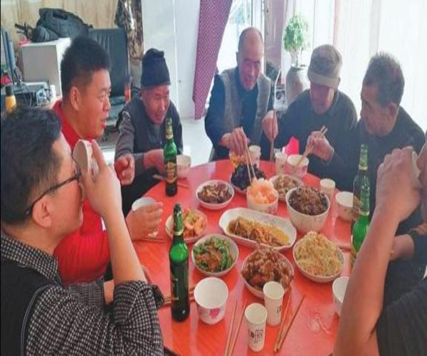 陳偉看到村上孤寡老人每年春節(jié)都是自己過(guò)年,孤苦伶仃,心懷不忍,于是萌生出在村上陪伴他們過(guò)春節(jié)的想法。征求了家人、領(lǐng)導(dǎo)、隊(duì)友們的意見后,得到了大家的支持。省分行尹行長(zhǎng)還自掏腰包為年夜飯準(zhǔn)備了白酒啤酒,陳偉受到大家的鼓勵(lì)和支持更是干勁十足,年前滿載一車年貨回到村里,春聯(lián)、福字、紅燈籠、煙花、鞭炮、各種酒水、食材一應(yīng)俱全?!百N春聯(lián)了!”大年三十下午,孩子們清脆的一聲吆喝,把寒冷的冬日攪擾得熱鬧起來(lái)?!鞍l(fā)憤圖強(qiáng)興大業(yè)勤勞致富奔小康”、“精耕細(xì)作豐收歲勤儉持家有余年”,一幅幅對(duì)聯(lián)貼上五保戶的家門,大紅燈籠也在微風(fēng)中搖曳。五保戶們對(duì)于駐村工作隊(duì)的駐地并不陌生,這里就跟自己的家沒什么兩樣。隨著噼啪的鞭炮響起,年夜飯正式開始,陳偉親自上灶掌勺做的小雞燉蘑菇、紅燒黃花魚、油悶大蝦、醬牛肉、拌涼菜、炒木耳、炸蝦片,還有哈爾濱特產(chǎn)紅腸熟食拼盤等滿滿一桌菜。眾鄉(xiāng)親圍桌而坐,這頓年夜飯除了葛修知、張斌、高慶林、姜福田等孤寡老人,還有身殘志堅(jiān)的脫貧攻堅(jiān)典范屈貴發(fā),加上左鄰右舍湊熱鬧的孩子們,讓工作隊(duì)的駐地顯得格外熱鬧。孩子們的歡聲笑語(yǔ)此起彼伏,孤寡老人也樂得合不攏嘴?!拔乙匆槐?!”從來(lái)都是少言寡語(yǔ)的屈貴發(fā)站起來(lái)非得表達(dá)兩句:“這幾年,多虧黨的政策好,陳大哥還這么關(guān)照我,使我和兒子重獲新生,我打心眼里感謝。今后我一定不會(huì)辜負(fù)省建行哥哥們的期望,努力勞動(dòng)致富回報(bào)大家?!?0時(shí),春晚準(zhǔn)時(shí)開始。高慶林老人抑制不住激動(dòng)的心情對(duì)陳偉說(shuō):“每年都是我們自己吃年夜飯,今年你來(lái)陪我們,真是又激動(dòng)又幸福!”說(shuō)著還不禁掉了眼淚?!鞍溩永?!”在陳偉的招呼下,大家邊看春晚邊和面拌餡包餃子。