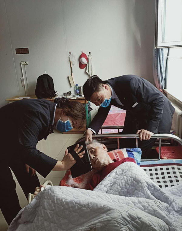 “真沒(méi)想到在這個(gè)特殊時(shí)期,你們能夠克服困難、特事特辦、上門服務(wù),我代表谷玉寶老人向你們表示衷心地感謝!”農(nóng)墾寶泉嶺養(yǎng)老服務(wù)中心負(fù)責(zé)人朱佳富向三位專程為谷玉寶老人“采集影像”的建行員工豎起了大拇指。