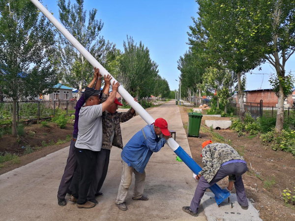 “貓黑”的鐵律終于被打破了。伴隨著建設(shè)銀行黑龍江齊齊哈爾分行駐村扶貧工作隊進駐的腳步,春生村也迎來了脫貧致富的春天。工作隊立足村內(nèi)實際,廣泛聽取群眾呼聲,以精準扶貧為抓手,積極出謀劃策,制定脫貧攻堅方案。當工作隊了解到村民渴望修建路燈的想法后,駐村書記李迎波便把解決村里夜間照明作為必辦實事之一,積極向上級申請定點扶貧專項資金。工作隊改善鄉(xiāng)村人居環(huán)境這樣的實事兒,很快得到上級行的認可,疫情期間特事特辦、專項審批資金很快下?lián)艿轿?。?月初資金下?lián)?,短短一個月的時間,駐村工作隊多方協(xié)調(diào)聯(lián)系廠家、組織隊伍、簽約項目、施工安裝……為能夠多裝幾盞路燈,節(jié)約人力成本,駐村工作隊帶領(lǐng)村民一起頂風冒雨,披星戴月,放棄假日休息加班加點趕工。終于,在中國共產(chǎn)黨成立99周年華誕前夕,65盞路燈全部投入使用,村民們都親切的把這條飽含著建行駐村干部深情厚意的扶貧路稱之為“建行路”。