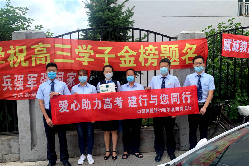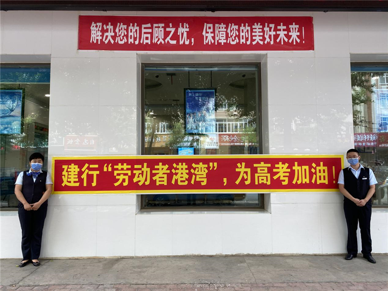 高考會遲到,建行不缺席。在這萬千莘莘學(xué)子魚躍龍門的特殊日子里,“愛心助力高考建行與您同行”“建設(shè)銀行勞動者港灣祝愿莘莘學(xué)子金榜題名夢想成真”“戰(zhàn)疫情勇?lián)?dāng)獻(xiàn)愛心助高考”“助力高考!高考優(yōu)先!高考加油!逢考必勝!”等條幅和服務(wù)語伴隨著“建行藍(lán)”的身影在建行“勞動者港灣”和各大考點間涌動,成為一道道亮麗的風(fēng)景線。同時,建設(shè)銀行黑龍江省分行還通過“建行大學(xué)”線上直播及微信公眾號等形式,將考前心理疏導(dǎo)溫馨提示、備考指南及高考志愿填報等攻略貫穿于助力高考服務(wù)的始終,為莘莘學(xué)子加油助威。