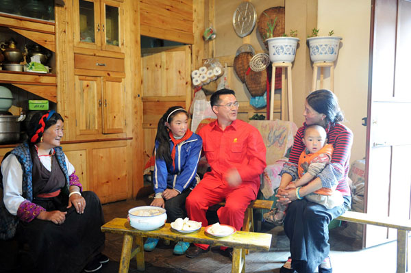 段慶敏給益西卓瑪家每一個(gè)成員都帶去了禮物,益西卓瑪?shù)陌职种v:“這孩子找了個(gè)好干爹?!痹瓉?lái),這里有把結(jié)對(duì)的兩個(gè)家庭稱為干親家的風(fēng)俗。益西卓瑪說(shuō):“有干爹的資助,我要更加努力地學(xué)習(xí)?!?br/>