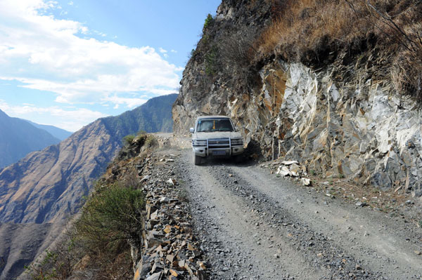 從九龍縣城去益西卓瑪家,翻越了兩座海拔4000多米的高山,縣里挑選了車況良好的越野車和熟悉路況的當(dāng)?shù)伛{駛員,100公里的險(xiǎn)路,來(lái)回整整用了兩天時(shí)間。