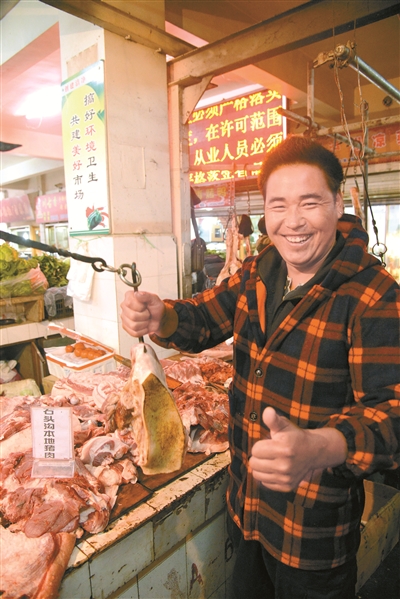 10月13日早晨8點,羅光群準時出現(xiàn)在九龍縣龍興菜市場蔬菜攤位前,蘿卜、玉米、土豆等菜品帶著晨露被碼得整整齊齊。“我賣的都是咱們石頭溝村自己種的菜,早上才運來的,新鮮!”她一邊回應(yīng)記者的提問,一邊熟練地給顧客算賬,沒有絲毫怠慢。菜市場的另一邊,擺著“石頭溝村豬肉”標牌的肉類門市鋪上,馬布哈正在和老顧客寒暄著。應(yīng)顧客要求,他手持噴槍正在處理肉品細節(jié)。雖在初秋,他額頭上卻已沁出汗珠:“生意好著呢!”