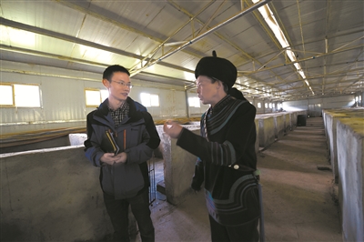 許新與村干部在養(yǎng)豬合作社討論工作方案