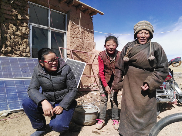 肩負(fù)組織的信任與重托,2015年她走進(jìn)了離縣城100公里的拉日村。剛駐村的時候,只有一間即是辦公室又是宿舍的房間,到了晚上,她也只能和其他四名男同事擠在這間辦公室里,零下二、三十度的天氣,蓋上3、4床被子,身上熱了,臉卻冰涼。因?yàn)闆]有廁所,晚上還有野獸出現(xiàn),她都不敢喝水,只盼著天亮,找隱蔽的地方解決問題。后來,在才仁吉藏所在公司的幫助下蓋起了黨員活動室,配了電腦、打印機(jī),村委會算是有了固定的辦公地,徹底解決了“坐在草地上開會,靠著墻根聊天”的無奈。