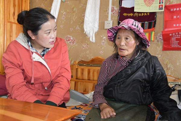 剛進(jìn)村開展扶貧工作時,村民們對扶貧工作不信任、不配合,她就利用自己漢藏雙語特長幫著老人做家務(wù)、洗衣服、聊家常,給孩子洗頭,幫著撿牛糞,砸冰取水,一步步與他們拉近距離,增進(jìn)感情,不久就贏得了群眾的信任與支持。精準(zhǔn)識別中使用“三看三聊”法,一步步推進(jìn),一戶戶“過篩子”,通過大量的調(diào)研,最終確定了貧困戶254戶483人,并對全村539戶村民全部建檔立卡,成為全縣第一個張榜公示且無異議的村社。