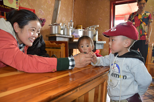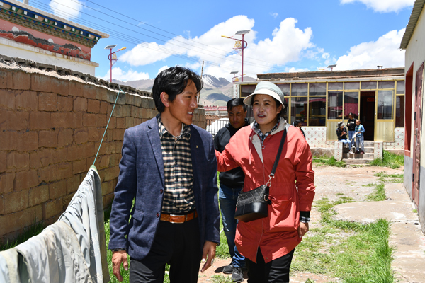 剛駐村時,才仁吉藏的主要精力都花在翻譯、填表、國家貧困信息系統(tǒng)資料采集、接待牧民反映問題以及參加純藏語會議上。通過幾個月的鍛煉和學(xué)習(xí),她也逐步掌握了村兩委班子工作要點(diǎn)、崗位職責(zé)和注意事項,慢慢得到村支書和村主任的認(rèn)可,開始參與到村集體的各類會議中去。2017年,她被光榮的推選為黨的十九大代表,在人民大會堂現(xiàn)場聆聽了習(xí)近平總書記所做的十九大報告。作為一名專職扶貧干部,她更加感到她所做的工作是多么的光榮和有意義,也感受到了使命的莊嚴(yán)、任務(wù)的艱巨。十九大結(jié)束后,中國石油集團(tuán)公司組織了十九大代表公司內(nèi)部巡回宣講會,在宣講過程中,她一方面分享她參加十九大的感想,同時也講述她在拉日村駐村扶貧期間的經(jīng)歷與故事,各石油戰(zhàn)線的干部員工聽完后都高度贊揚(yáng)她們?yōu)榉鲐毠ぷ魉龅呐?,也牽掛著拉日村村民的生活,大家積極行動,捐款捐物:北京銷售公司捐贈幫扶資金10萬元并捐助了衣物,河北銷售公司一位不愿意留名的同事主動承諾資助村里的孤兒康周措毛學(xué)習(xí)直到大學(xué)畢業(yè),青海銷售公司30名領(lǐng)導(dǎo)與貧困戶結(jié)成“一對一”認(rèn)親幫扶……這也是她作為黨代表盡的一份責(zé)任,為家鄉(xiāng)做的一份貢獻(xiàn)。