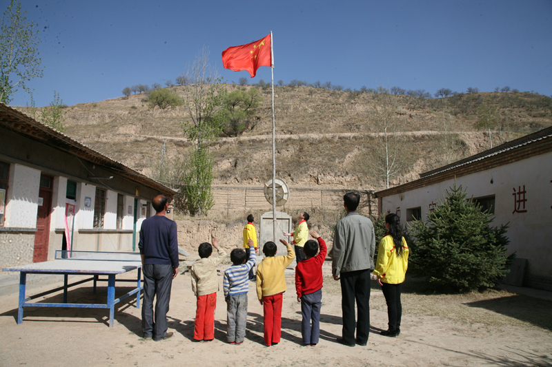 每次到學(xué)校,愛心團(tuán)隊成員和孩子們做的第一件事就是升國旗。面向國旗、正對大山,孩子們的夢想和國旗一起飄舞飛翔。