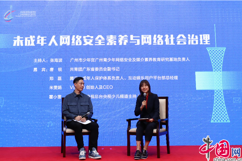 中央網信辦網絡社會工作局副局長蘇翠芳、廣東省委網信辦(省互聯網辦)副主任許華、中國互聯網新聞中心總編輯王曉輝出席活動并致辭,中國兒童少年基金會秘書長朱錫生、著名主持人何炅通過“云端”參會,共青團廣東省委員會副書記唐銳、清華大學新聞與傳播學院常務副院長陳昌鳳、奧運冠軍鄧亞萍、廣州市少年宮廣州青少年網絡安全及媒介素養(yǎng)教育研究基地負責人張海波、騰訊未成年人保護體系負責人、互動娛樂用戶平臺部總經理鄭磊、VIPKID創(chuàng)始人及CEO米雯娟、中央廣播電視總臺央視少兒頻道主持人霍小雷等來自政府、高校、互聯網企業(yè)、教育機構的嘉賓進行主題演講互動。