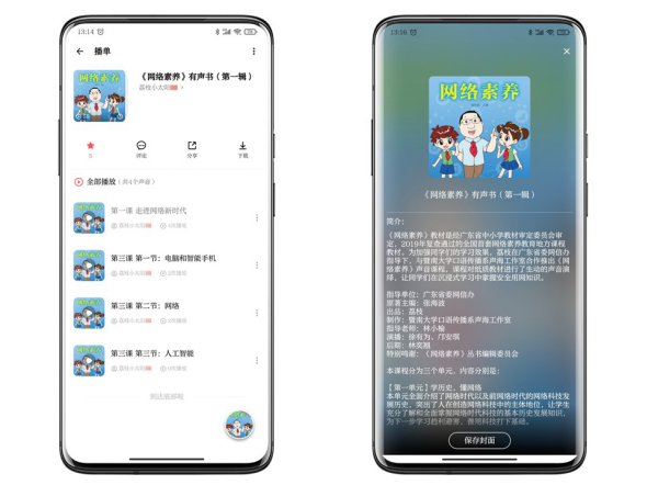 據(jù)悉,《網(wǎng)絡(luò)素養(yǎng)》有聲書(shū)共分三輯。目前已上線的是第一輯內(nèi)容,包括電腦和智能手機(jī)、網(wǎng)絡(luò)、人工智能三方面與新時(shí)代網(wǎng)絡(luò)環(huán)境緊密相關(guān)的基礎(chǔ)知識(shí)。第二、三輯也正加緊制作,將在近期陸續(xù)上線。
