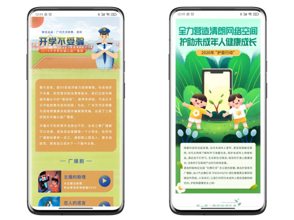 2019年5月,在全國(guó)“掃黃打非”辦公室的指導(dǎo)下,荔枝積極響應(yīng)“綠書(shū)簽行動(dòng)”,特別出品“綠書(shū)簽”系列校園廣播劇和漫畫(huà)。在9月開(kāi)學(xué)季,荔枝又與廣州市天河區(qū)網(wǎng)警聯(lián)合出品“校園反詐”系列廣播劇,特邀人氣主播根據(jù)真實(shí)校園詐騙案例改編制作廣播劇,以廣播劇生動(dòng)再現(xiàn)詐騙案例,引導(dǎo)青少年用戶建立防詐意識(shí),警惕校園詐騙的陷阱。