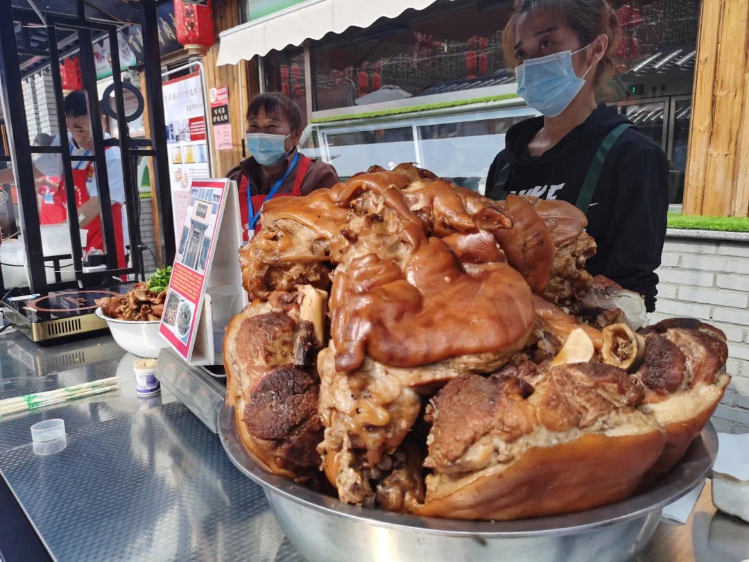 步入小吃街香氣四溢,游客交織,現(xiàn)場(chǎng)攤位僅保定非遺美食攤位就達(dá)18家,有中華老字號(hào)、百年歷史的白運(yùn)章包子;延續(xù)傳統(tǒng)三吃六味特色的河北傳統(tǒng)名吃白肉罩火燒;“天上龍肉、地下驢肉”,漕河全驢宴共有108道菜式;創(chuàng)建于1923年的中華老味道白家罩餅精選食材,四代傳承;良心油條哥不用復(fù)炸油,自備驗(yàn)油勺走紅網(wǎng)絡(luò),被評(píng)為第四屆“全國(guó)道德模范”;好滋味驢肉火燒首創(chuàng)驢火中式快餐標(biāo)準(zhǔn),全國(guó)開辦一百多家直營(yíng)店和加盟店,保定驢火走向全國(guó);傳承三百多年的曲陽(yáng)黑閨女餃子,祖?zhèn)魉幧琶胤郊笆炙?,小小的餃子更有?dú)特的味道;唐縣田造順碗肉、安國(guó)馬蹄燒餅、順平熏肉、高陽(yáng)田家燒雞、曲陽(yáng)缸爐燒餅......這些舌尖上的保定美食,吸引了網(wǎng)易、騰訊、斗魚等美食網(wǎng)紅現(xiàn)場(chǎng)直播打卡,游客也紛紛駐足,一飽口福。