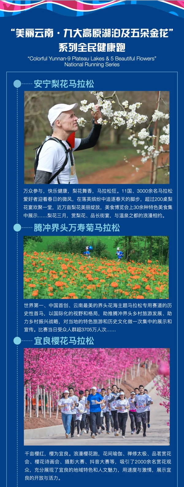 在金飛豹2020年關(guān)于《打造云南原創(chuàng)品牌活動,舉辦“美麗云南·九大高原湖泊及五朵金花”全民健康跑系列活動》的提案中再次說道:“秘境百馬的成功實踐表明,獨(dú)具云南特色的原創(chuàng)體育項目具有引流量大、帶動性強(qiáng)的特點(diǎn),可以充分與生態(tài)保護(hù)、民族文化、旅游資源、健康行業(yè)等高度融合,助推云南“健康生活目的地”的打造!放眼云南,“九大高原湖泊”以及“五朵金花”都是云南獨(dú)有大品牌資源,可與體育活動充分融合!”