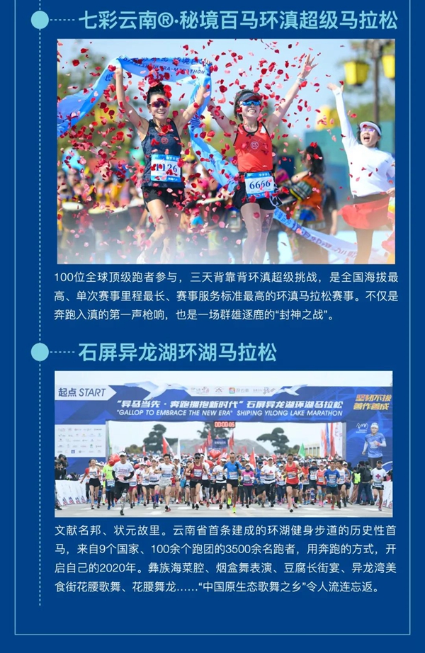 100天冰與火的淬煉,為云南省品牌賽事的打造奠定了堅實的基礎(chǔ)。2020年兩會期間,政協(xié)委員金飛豹向大會正式提交了關(guān)于《打造云南原創(chuàng)品牌活動,舉辦“美麗云南·九大高原湖泊及五朵金花”全民健康跑系列活動》的提案,并帶領(lǐng)秘境百馬團(tuán)隊,在云南省境內(nèi)相繼圍繞“九大高原湖泊”及“五朵金花”的主題,舉辦了多場馬拉松賽事,目前,相關(guān)賽事仍在組織與策劃中。